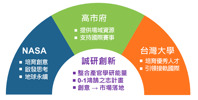 誠研創新 與國立臺灣大學 吳俊輝教授合作多年,在今年「NASA 黑客松」賽事中,雙方更擴大合作規模,深度探勘推薦團隊參賽。本屆的城市賽,台灣分北中南區共有54支隊伍報名參賽,經過激烈比拚後,頒出 31 個獎項,並挑選出7支菁英隊伍組成台灣代表隊,進軍接下來的全球賽,其中就有2支隊伍來自高雄。除了精彩賽事看點外,誠研創新 提出「鴻鵠之志」計畫,打造從概念到創業(0→1)的機制,讓參賽團隊的構思或原型不止停留在「提案」階段,而是能透過導師輔導、技術媒合與資源配對串聯,孵化為具備商業化機會與市場潛力的MVP、能市場落地的具體方案。誠研創新 成功匯聚產官學研的力量,建立共創共育的鏈結網絡,讓國際賽事與地方創業生態互為支撐。