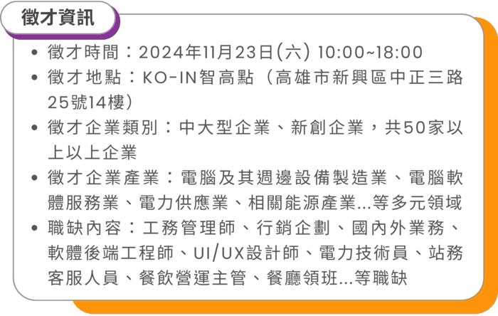 求職者只需一站即可探索多家企業職缺,每位求職者的資料更將透過系統化篩選與專業人力顧問的精準配對,確保你的專業技能和目標與職位高度契合,幫你在眾多職缺中找到和你最適配的工作,免除重複面試和職場試錯的風險。